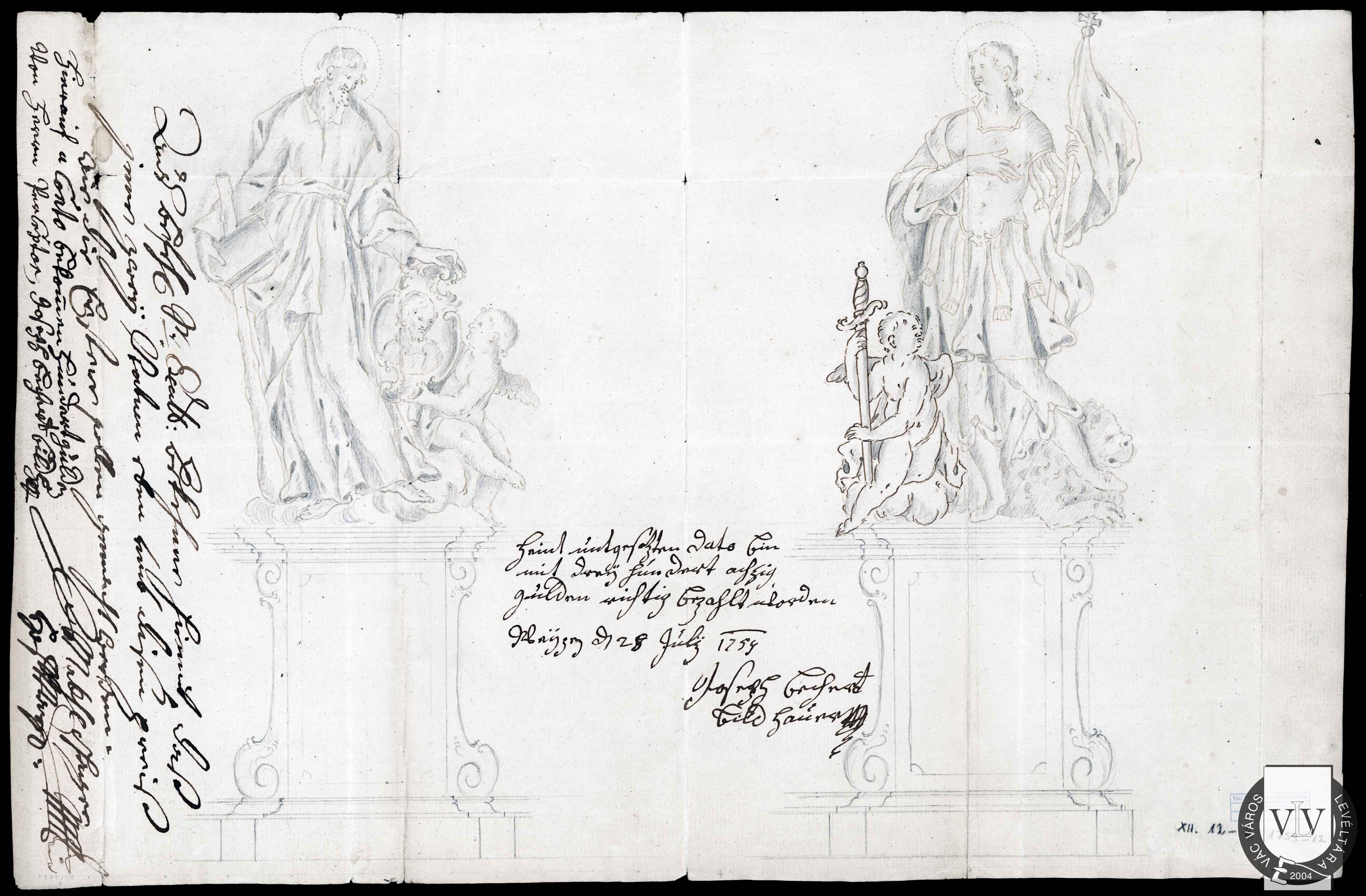 Bechert József szobortervei Szent Kamillról és Szent Venáncról, 1759