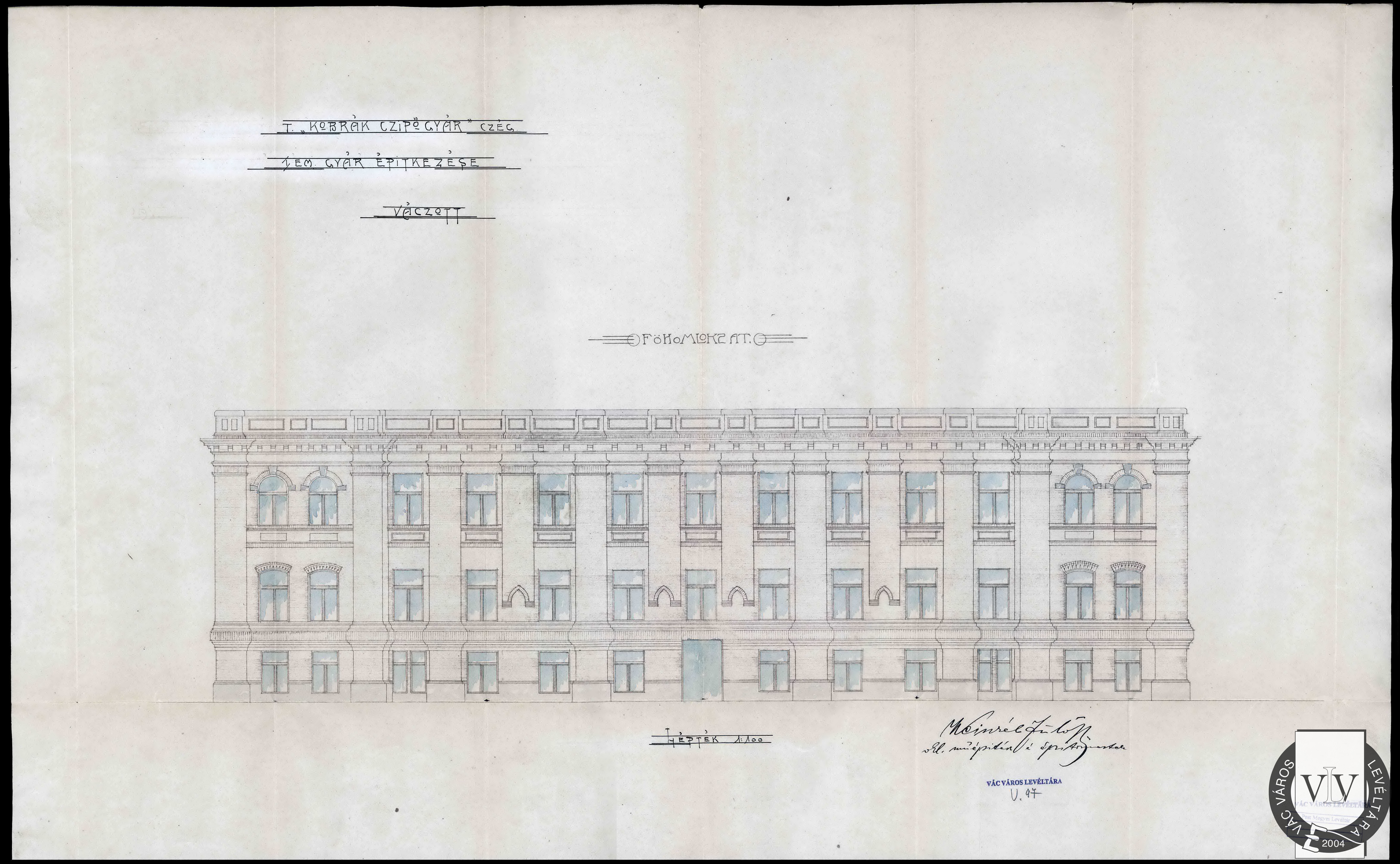 A Kobrak Cipőgyár homlokzati rajza, 1905