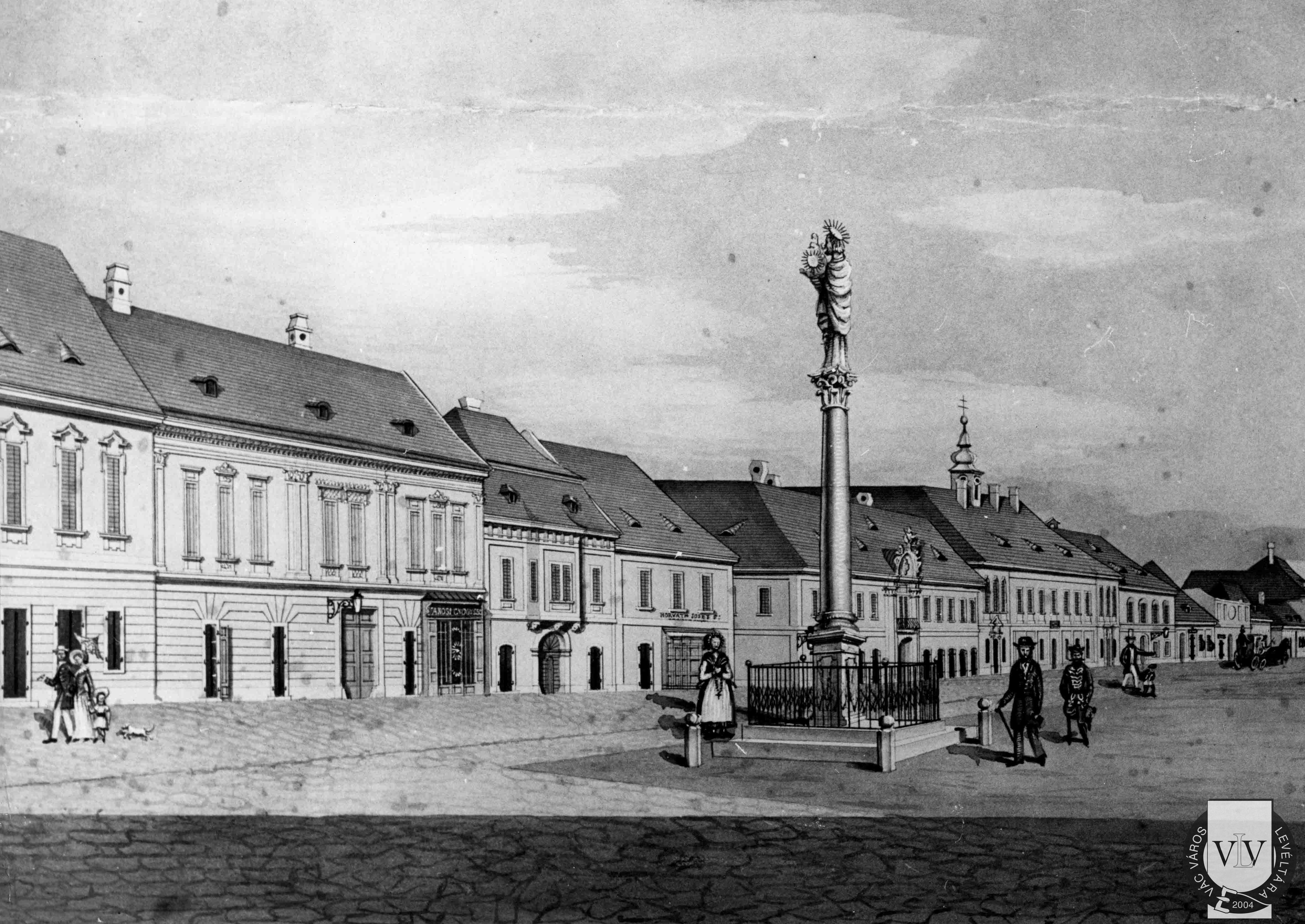 A Március 15. tér az Eszterházy utcai saroképülettel, 1857