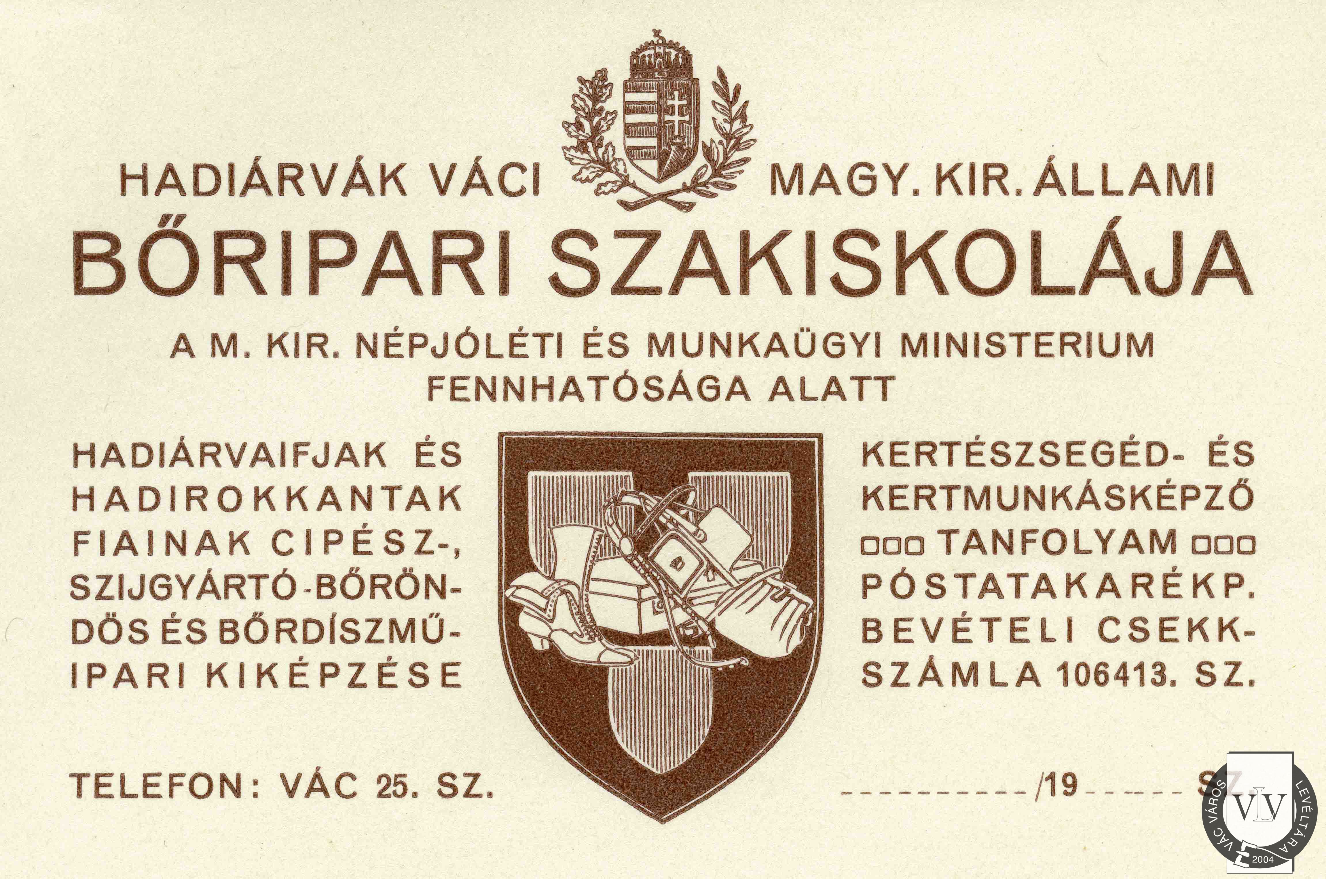 A Bőripari Szakiskola fejléces papírja, 1925
