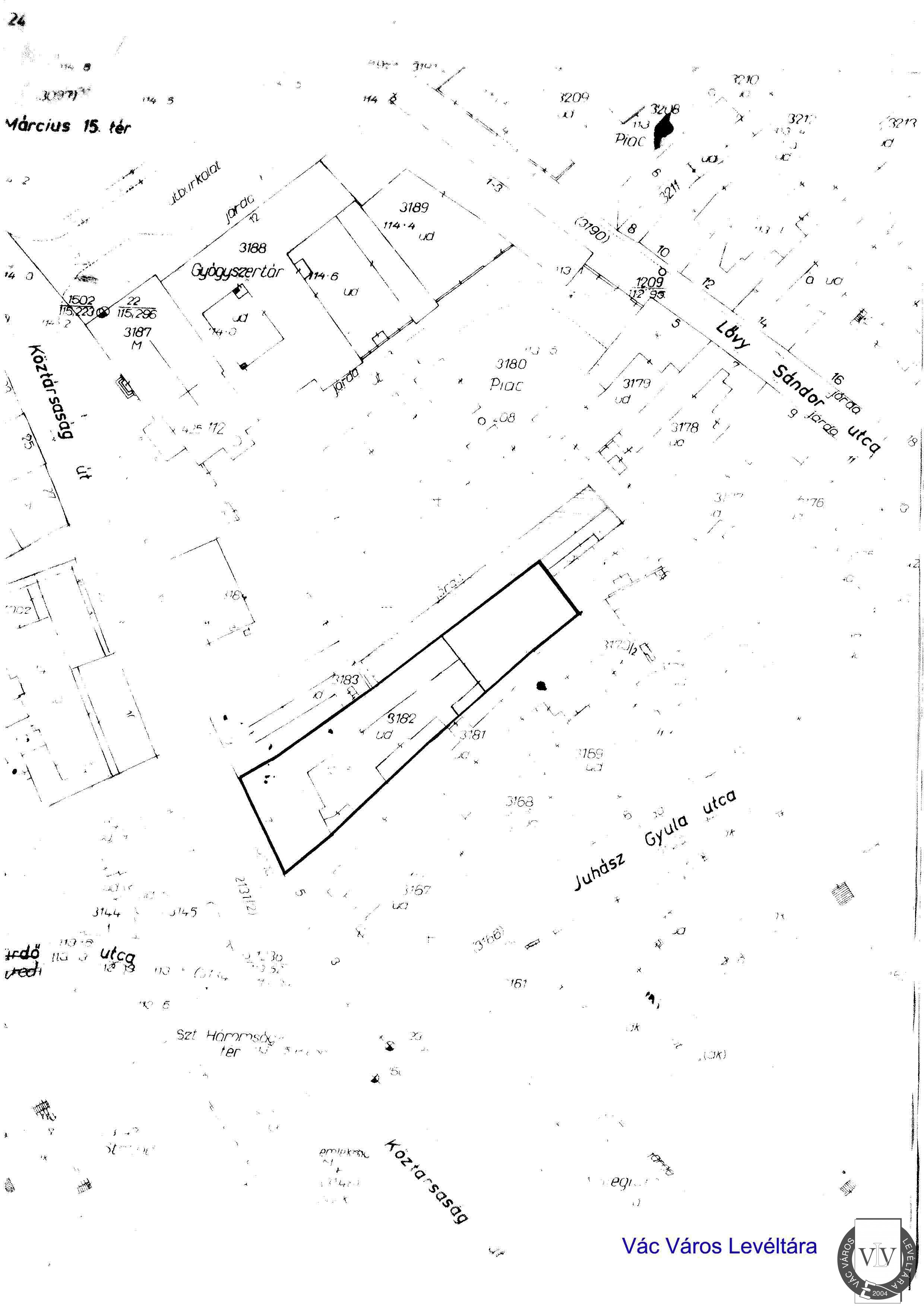 A Köztársaság út 7. számú telek helyszínrajza, 1990