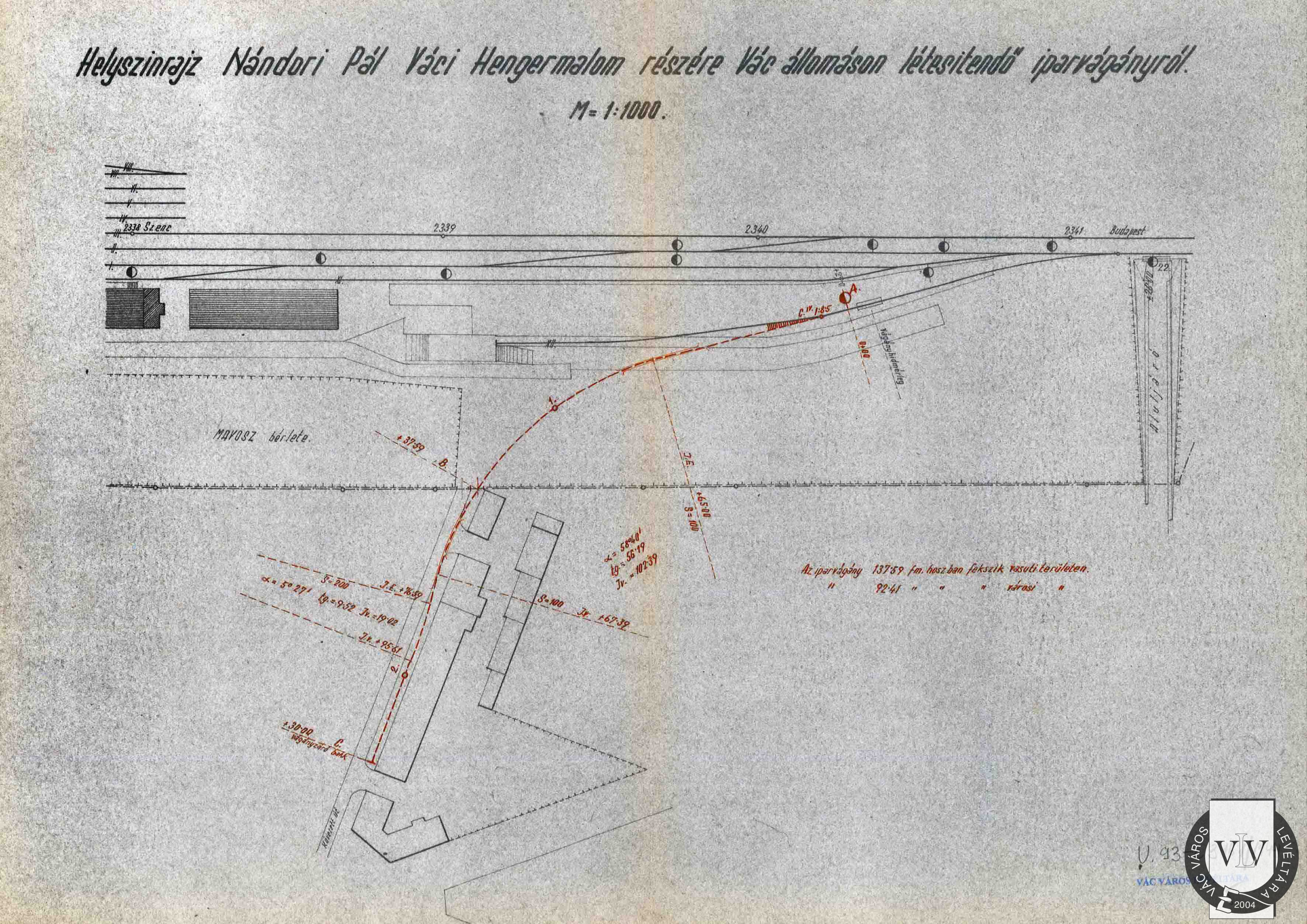 A Váci Hengermalom iparvágányának helyszínrajza, 1944